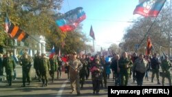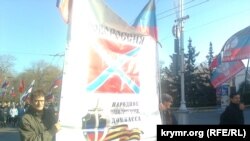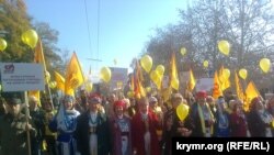 Numayış iştirakçileri rusiyeli devlet ve siyasiy firqalarnıñ bayraqları altında Lenin soqağından Nahimov adına caddesine qadar bardılar.