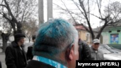 Qırımtatar halqınıñ aqlarını qoruv Komitetiniñ koordinatorları – Eskender Bariyev, Sinaver Kadırov ve Abmecit Suleymanovğa Aqmescitte keçirilgen matbuat köneferentsiyası devamında zelönka septirdiler, dep haber ete Qırım.Aqiqat mühbiri.