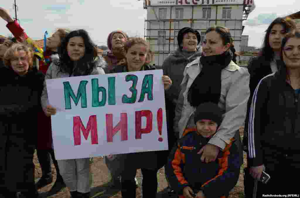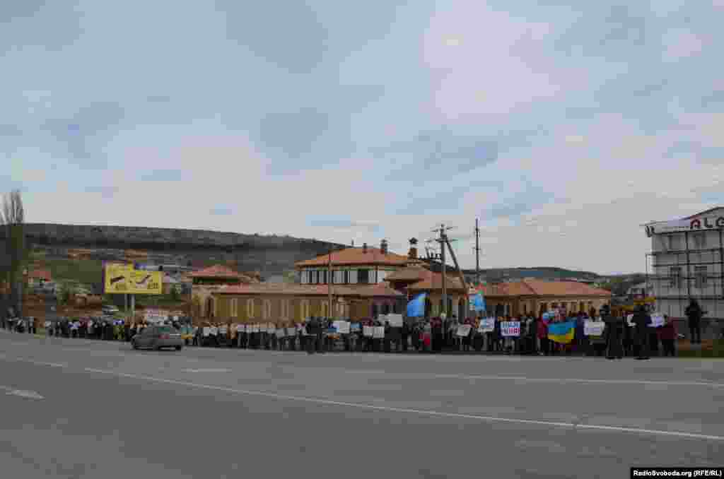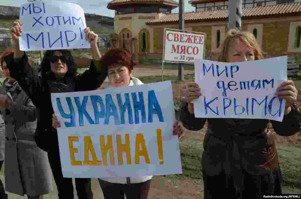 Rusiyeniñ Qırım işğaliniñ ekinci yıllığında Qırım.Aqiqat 2014 senesi Qırım işğali nasıl oldı ve oña qarşı çıqqanlarnıñ aktsiyalarını köstermek içün arhif fotoresimlerini qullana. 2014 senesi mart 6-da Mamaq köyüniñ bir qaç yüz qadını Aqmescit civarında barışıq içün ve Qırımda Rusiye ordusına qarşı aktsiyanı keçirdiler. Olar aylanma yolunda Ukraina bayraqlarınen turıp, sarı-mavı toplarnı aldılar. Yoldan keçken bir çoq maşina ses bere edi.