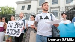 İyül 27-de mında farqlı tillerde #Ervin_qayda yazısı ile levhalar ve qırımtatar bayraqlarını alıp kelgen tahminen 20 kişi toplaştı. Aktsiya iştirakçileri Qırımda insanlarnıñ ğayıp olmasından Rusiye uquq qoruyıcıları ve «Qırım samooboronası» mesüliyetli, dep qayd ettiler.