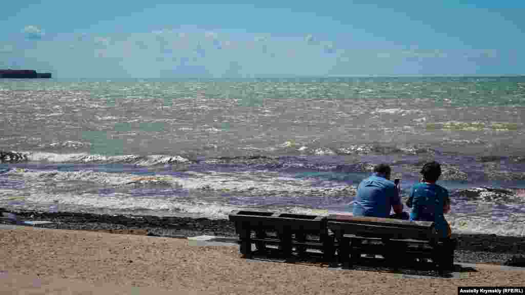 Bulançıq deñiz ve bir oba suv otu - keçken afra Alma Tamaq (Pesçannoye) köyünde raatlanuv tamam böyle edi. Bir kün evel Bağçasaray rayonınıñ esas kurortında şiddetli deñiz furtunası oldı.