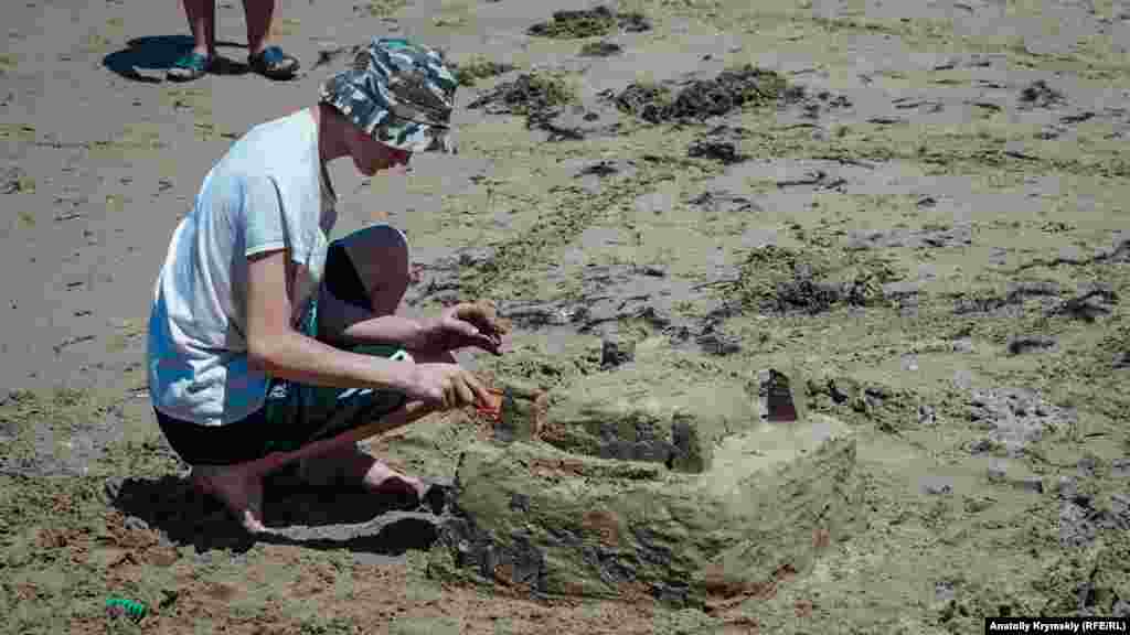 Qurtarıcı matros Oleg Kuznetsovnıñ iş yeri. Moskovadan kelgen 62 yaşındaki mektep ocası, bir qaç yıldan berli yazda Qırım plâjlarına qazanmağa kele