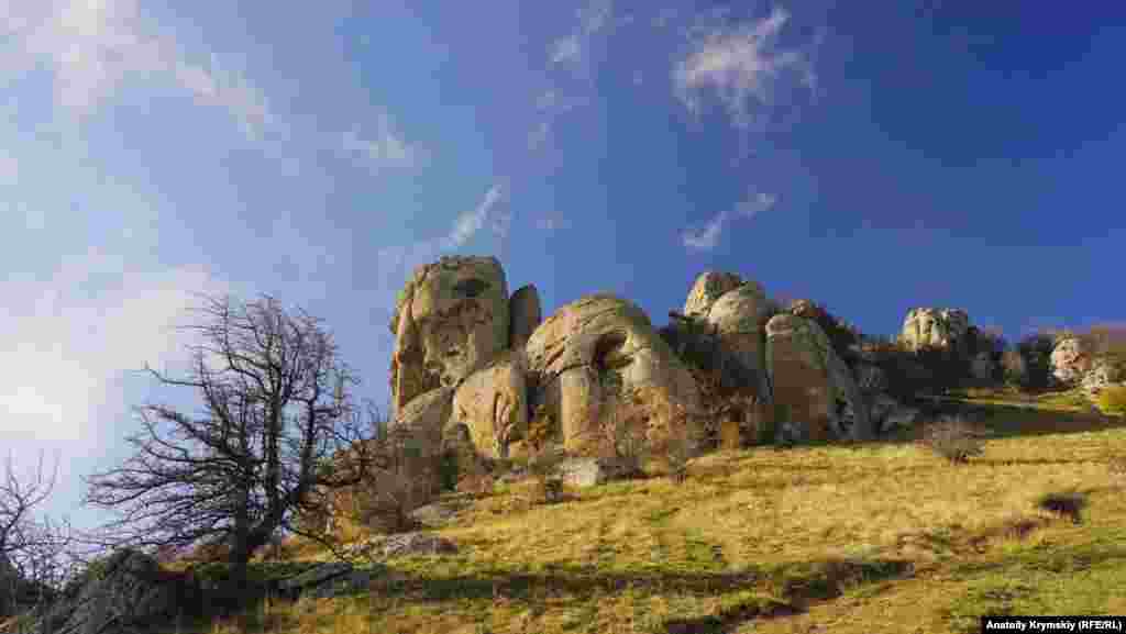 Dağ massivi Şimal ve Cenüp qısımlarına bölüne. Açıq avada cenübiy dağ töpesinden Aluşta vadiysi, Babuğan yaylası ve Çatırdağğa acayip manzara açıla, uzaqlarda ise Sudaq dağları körüne. Deñizniñ yançığında Qastel dağı, ufuqta Ay-Petriniñ tişleri körünmekte. Şarqta - uzun Meganom burnu yerleşken, onıñ tübünde - şekerli başqa oşağan 472 metrli Quş Qaya. Qalege oşağan tişli dağ aveskâr turistler, süretçiler, ressamlarnıñ, film yapıcılarınıñ ve sadece dağ manzaralarnıñ sevda olğanlarnıñ sevimli yerlerinden birisi.