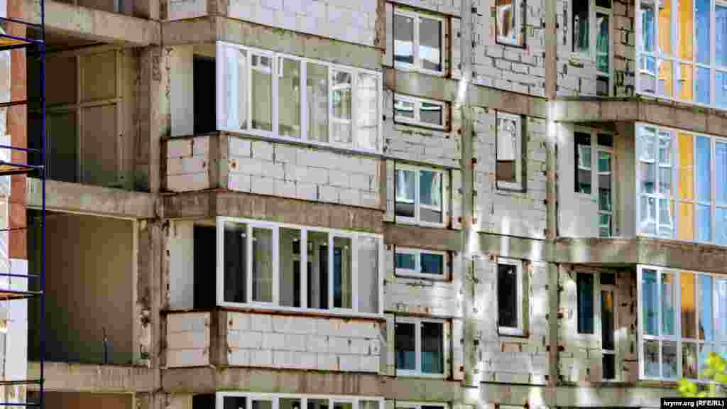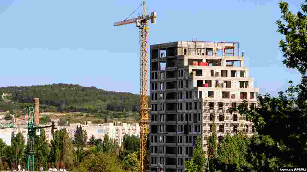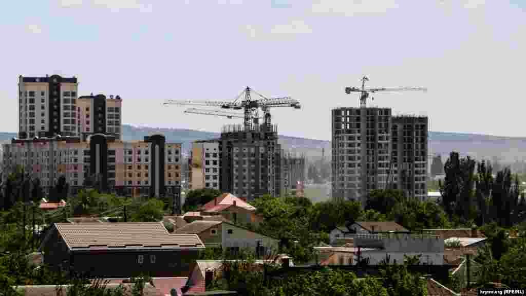 Aqmescitte biri-biriniñ artından yüksek binalar öse. Yüksek binalar şeerniñ türlü rayonlarında qurula. Yarımadada taşılmaz mülkke para yatırmaq, kârlı iş sayıla. Ekspertlerniñ malümatına köre, Qırımnıñ qurucılıq sanayısı ösüv tendentsiyasını saqlap qala. Yüksek talap olğanı içün bu yerdeki fiyatlar Moskvadaki fiyatlar ile bir oldı.
