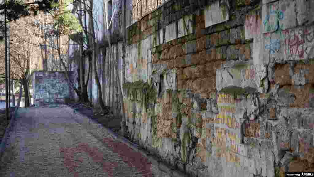 Lva Tolstogo soqağında yerastı keçitinde graffiti. Qurucılar onı şimdilik tiymey. Qalğan resimlerni çini tolanen qapattılar
