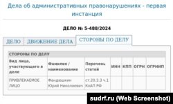 Qaydlarğa köre, qırımlı uquq qoruyıcılarnıñ Yuriy Fandüşkinge qarşı protokolını qadı bir daqqada baqtı. Birinci mahkeme oturışuvından qarar çıqarılğanına qadar bu qadar vaqıt keçti.